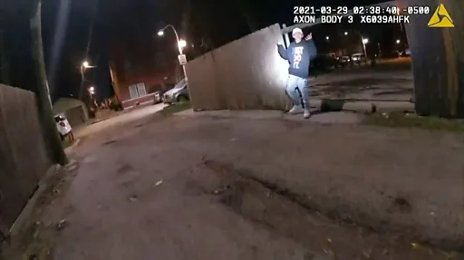 ويظهر فيديو كاميرا شخصية الضابط وهو يصرخ "ألقه"، قبل إطلاق النار على آدم توليدو مرة واحدة في صدره في 29 مارس/آذار الماضي.