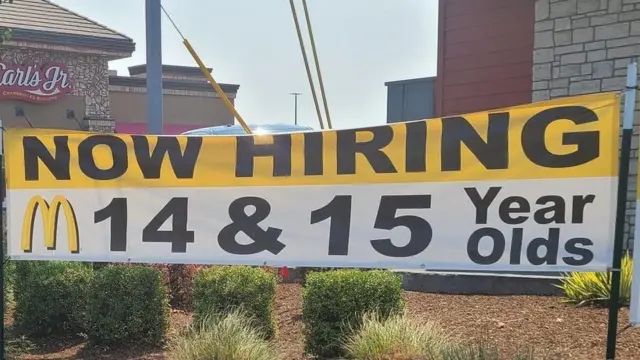 يدعو فرع ماكدونالدز في ولاية أوريغون في الولايات المتحدة الأطفال الذين تتراوح أعمارهم بين 14 و15 عاما للتقدم إلى وظائف في مطاعمه وسط نقص في اليد العاملةفي الوجبات السريعة.