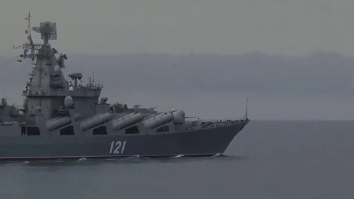 وظلت موسكفا التي تزن 12,500 طن تمثّل الأسطول الروسي المُعادي قبالة الساحل الأوكراني في أوديسا.