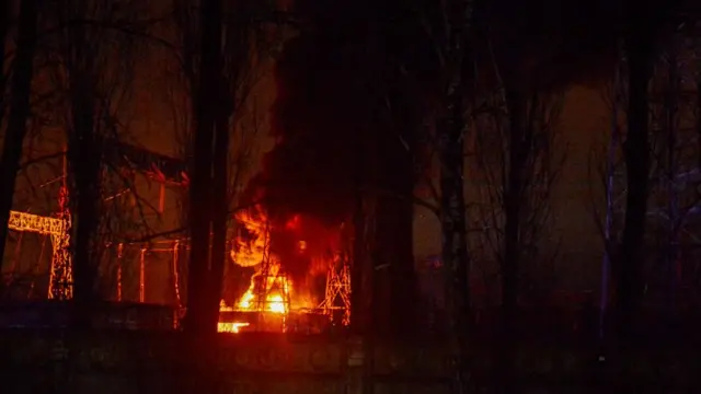 وتظهر الصور على الإنترنت رجال الإطفاء عند حريق كبير في محطة للطاقة.