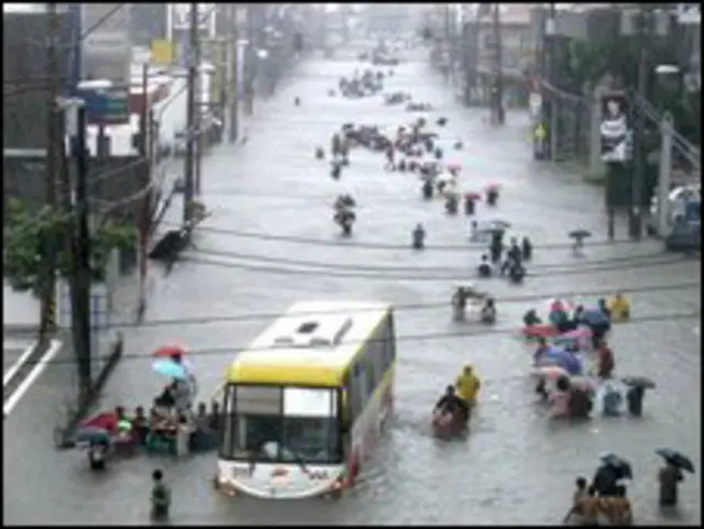 وتشير بيانات الى ان كمية الامطار التي هطلت على الفليبين خلال ست ساعات تعادل معدل هطول الامطار لفترة شهر كامل نتيجة لهبوب عواصف لم تشهدها العاصمة مانيلا على مدى 20 عاما.