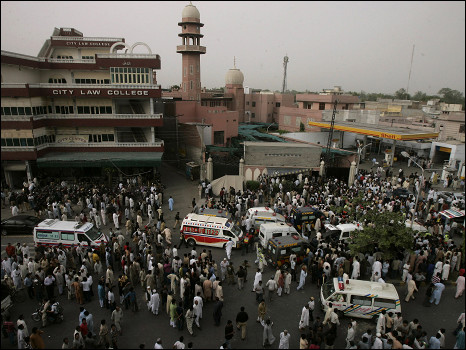 وقد تعرضت مدينة لاهور القريبة من الحدود الهندية الباكستانية لعدة هجمات مرتبطة بالقاعدة وطالبان في حملة هجمات تجتاح البلاد أودت بحياة 3300 شخص خلال ثلاث سنوات.