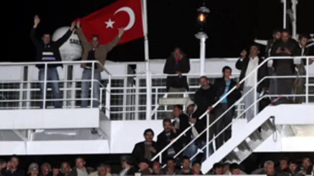 وقامت تركيا باجلاء حوالي 6 آلاف من رعاياها بحرا في عملية برية وبحرية وجوية استغرقت ثلاثة ايام في اكبر عملية من نوعها. وقال وزير الخارجية التركي احمد داود اوغلو يوم الاربعاء إن 21 دولة طلبت من بلاده السماح باجلاء رعاياها عبر الاراضي التركية. وكان يعمل في ليبيا اكثر من 25 الف من المواطنين الاتراك.