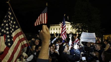 وقد تجمعت حشود من الامريكيين خارج البيت الابيض حال ذيوع الخبر.