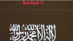 والعبارة التي ظهرت على الموقع باللغة العربية بعد اختراقه هي" لا إله إلا الله". وقد ظهرت صورة لسيف تحت العبارة.