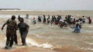 خرج مئات الأشخاص في مظاهرة بالقوارب ضد امداد محطة طاقة نووية جديدة بالوقود في جنوبي الهند.