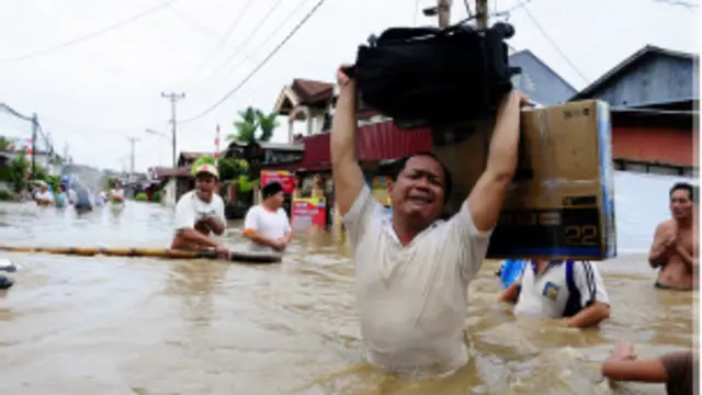 ونزح آلاف الأشخاص من منازلهم يوم الأحد في مدينة مانادو، عاصمة الإقليم المتضرر، وفي المناطق المحيطة بها للفرار من الفيضانات.