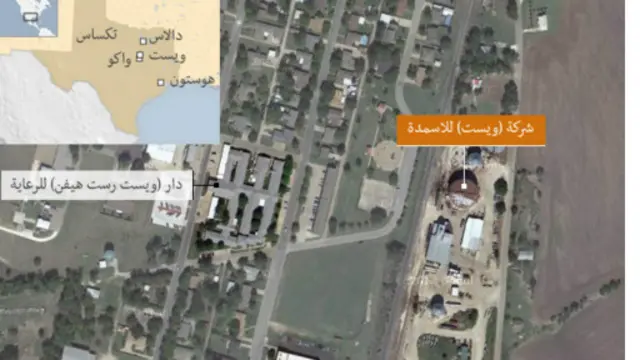 وسعت فرق الإطفاء إلى إخماد حريق اندلع في المصنع حينما وقع الانفجار في بلدة ويست التي يعيش فيها 2700 شخص وتقع على بعد نحو 32 كيلومترا شمال واكو.