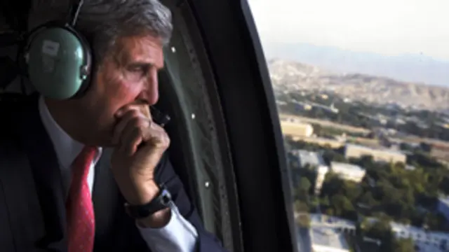 ويأمل كيري ان يتمكن خلال زيارته من جسر الهوة الواسعة بين الموقفين، حسبما يقول مراسل بي بي سي في افغانستان ديفيد لوين.