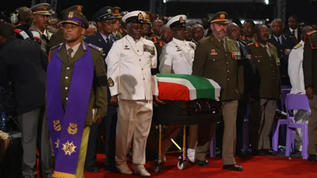 واقيم قبل دفن الجثمان، حفل تأبين رسمي ألقى فيه عدد من الرؤساء والشخصيات كلمات تأبين للزعيم الأفريقي الراحل، من بينهم الرئيس الجنوب أفريقي جاكوب زوما والرئيس التنزاني جاكايا كيكويتي والرئيس المالاوي جويس باندا ورئيس الوزراء الإثيوبي هيلا مريم ديسالي الذي مثل الاتحاد الأفريقى في كلمته، فضلا عن الرئيس الزامبي السابق كينيث كاوندا.