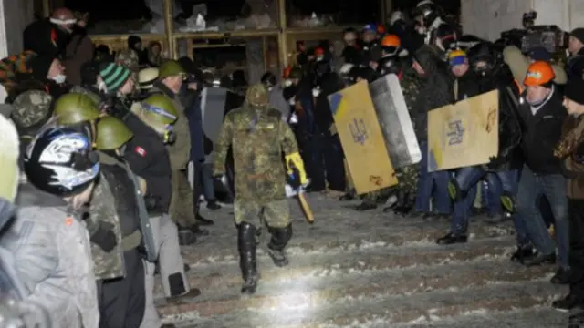 وعلى الرغم من أن احتجاجات "أورو-ميدان" في العاصمة كييف تميزت بالسلمية فإن هذا لم يمنع مجموعات متطرفة من الاشتباك مع الشرطة بعيدا عن ميدان الاستقلال الرئيسي.