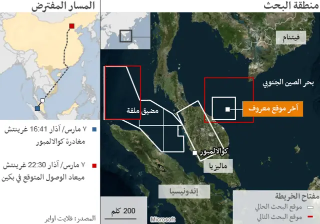 يذكر ان فرق انقاذ من عدة دول تقوم بالبحث عن الطائرة في منطقة بحر الصين الجنوبي وخليج تايلاند.