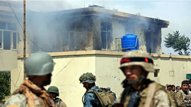وتحاول القوات الحكومية استعادة المجمع من خلال عملية عسكرية سريعة تشتبك فيها مع قوات طالبان المتحصنة داخلة.