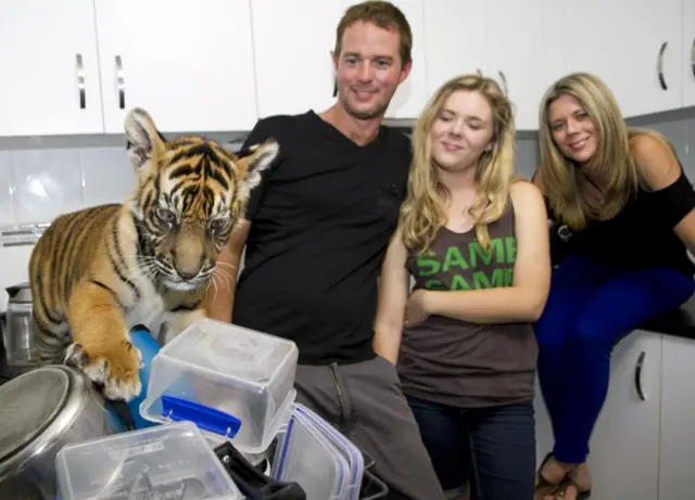 حينما ولد نمران من فصيلة النمور السومطرية النادرة في "حديقة حيوان استراليا" شمال مدينة "بريزبن"، تم إرسالهما مع أحد الحراس ليعيشا معه في منزله الأشهر الأولي من حياتهما.