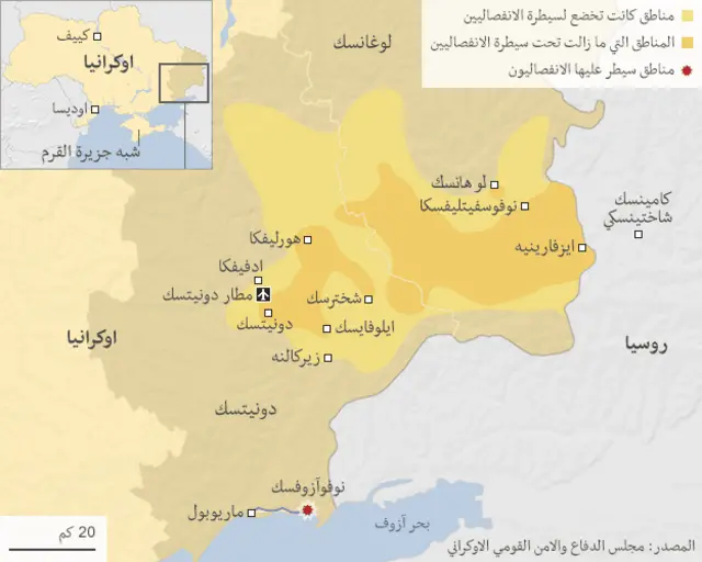 وتدور شكوك بأن روسيا تريد إبعاد القوات الأوكرانية عن مدينتي دونيتسك ولوهانسك حيث تحاصر قوات الانفصاليين.