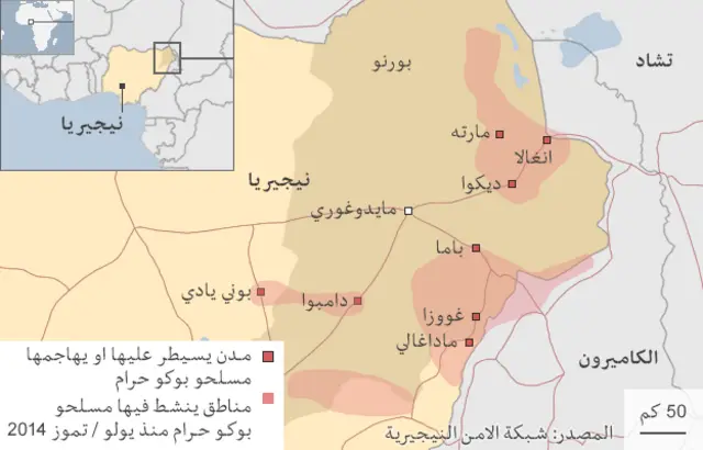 وكان مسلحو الحركة قد سيطروا الاسبوع الماضي على بلدة باما، ثاني كبريات مدن ولاية بورنو.