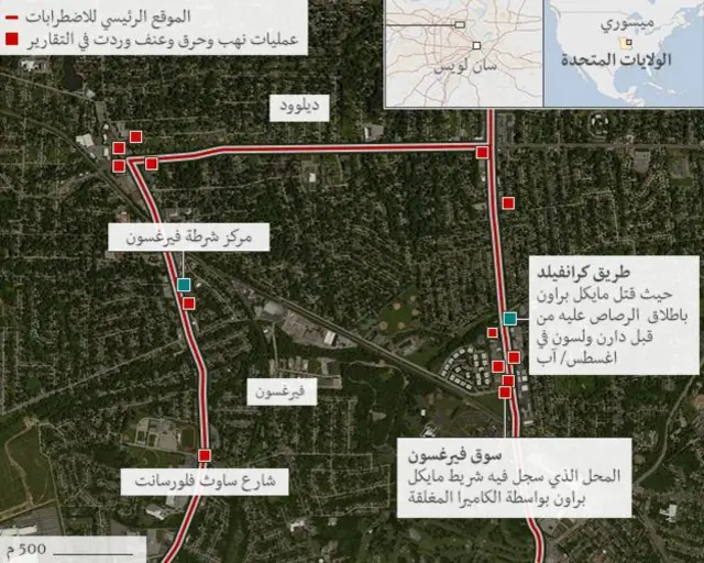 وأمر حاكم ولاية ميزوري الأمريكية جاي نيكسون بنشر 2200 من عناصر الحرس الوطني في المدينة بعدما أغلق متظاهرون فيها طريقا رئيسيا لفترة وجيزة.