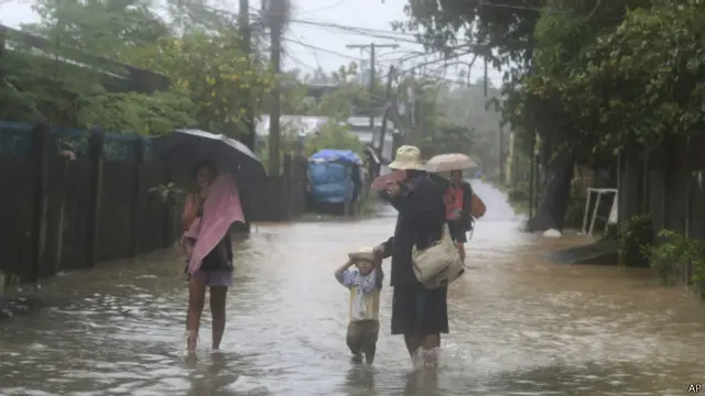 وتقول مراسلة بي بي سي في بلدة ليغازبي الواقعة جنوبي جزيرة لوزون إن شوارع البلدة خلت تماما من المارة فيما التزم السكان الملاجيء.