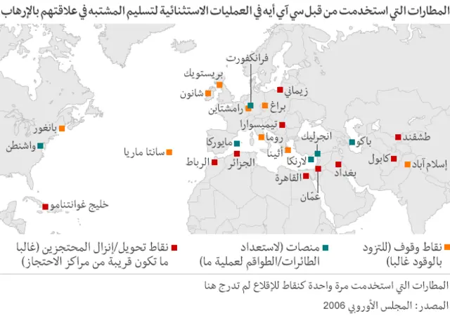 وخلال هذا البرنامج ، احتُجز نحو 100 إرهابي مشتبه بهم في "مواقع سوداء" خارج أراضي الولايات المتحدة.