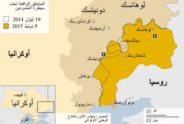 ويقول مراسل بي بي سي في دونيتسك جيمش رينولدز إنه فيما تحاول السلطات الأوكرانية فرض خط لوقف إطلاق النار اعتمادا على الإتفاق الذي تم التوصل إليه في الخامس من أيلول / سبتمبر الماضي في مينسك، يطالب المتمردون بإتفاق جديد يأخذ في نظر الإعتبار الإنجازات التي أحرزوها في الأسابيع الأخيرة.