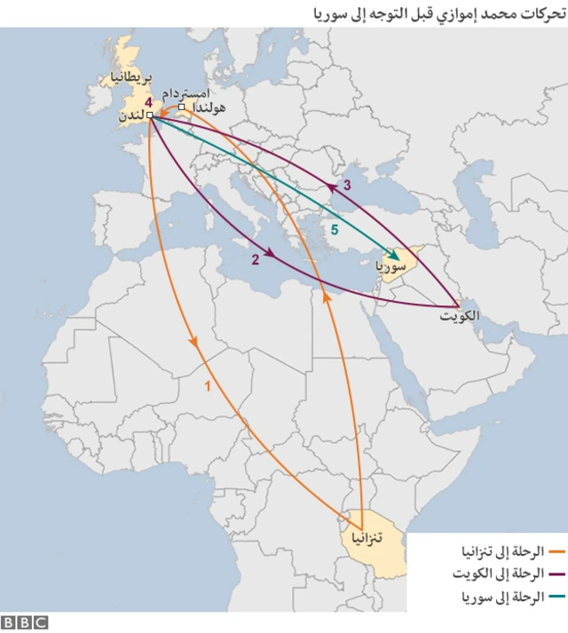 وتقول منظمة "كيج"، وهي جماعة ضغط تمثل أشخاصا تقول إنهم ضحايا انتهاكات أجهزة الأمن، إن إموازي اتصل بهم مدعيا أنه عانى من مضايقات من جهاز الأمن "إم أي 5" أثناء محاولته العودة إلى الكويت،البلد الذي ولد فيه.