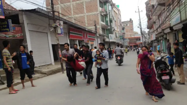 ويقول صحفي تابع لبي بي سي في العاصمة كاتماندو إن الآلاف من المواطنين يهيمون على وجوههم في الشوارع يبحثون عن مكان يقضون فيه الليل.