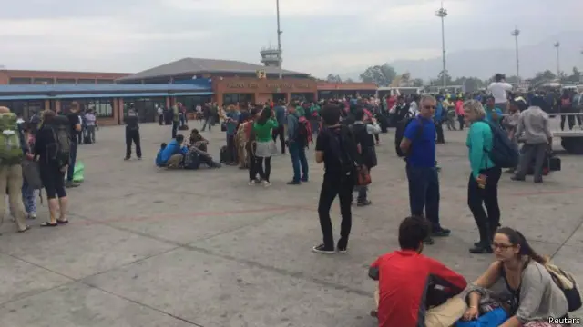 وقال مراسل بي بي سي في كاتماندو إن الآلاف من الناس يمضون الليل في العراء خوفا من حدوث المزيد من الهزات ، كما أعلنت حالة الطوارئ.