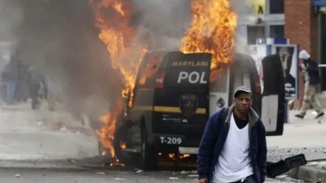 نشرت السلطات الأمريكية آلاف الجنود وأفراد الشرطة في مدينة بالتيمور بعد احتجاجات شابتها أعمال عنف على خلفية وفاة رجل أسود متأثرا بإصابات أثناء احتجازه لدى الشرطة.