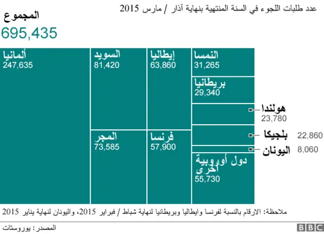 وأشار التقرير إلى أن ألمانيا تتلقى أكثر طلبات اللجوء من بين دول الاتحاد الأوربي، يليها السويد.