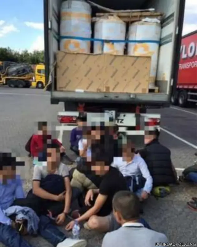 وأوقفت السلطات الشاحنة وعثرت بداخلها على 18 رجلا يعتقد أنهم من فيتنام.