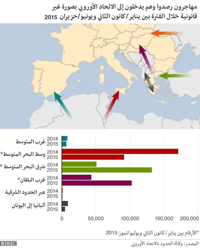 وجاء أغلب المهاجرين الذين وصلوا مؤخرا إلى أوروبا فرارا من الحروب في سوريا والعراق وأفغانستان، وبعض دول أفريقيا بحسب الأمم المتحدة.