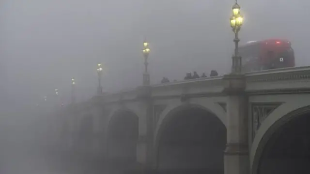وقالت إدارة مطار هيثرو إن 45 رحلة طيران ألغيت. ومن المنتظر أن يستمر الضباب الكثيف الثلاثاء.