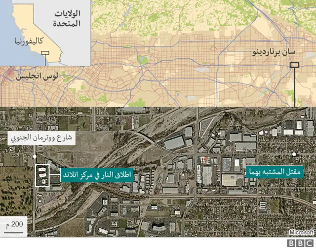 ويعيش في مدينة سان برناردينو نحو 200 ألف نسمة وتقع على بعد نحو 100 كيلومتر الى الشرق من لوس أنجليس.