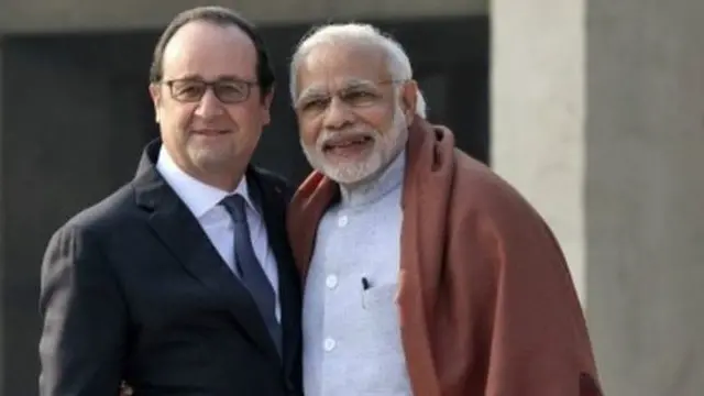 ويوجد هولاند حاليا في الهند في زيارة تستغرق ثلاثة أيام، وسيكون ضيف الشرف الرئيسي في احتفالات البلاد بيوم الجمهورية.