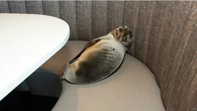 وقال الطباخ في المطعم برنارد غويلاس إن الفقمة دخلت الى المطعم من باب خلفي قادمة من الساحل المجاور للمبنى.