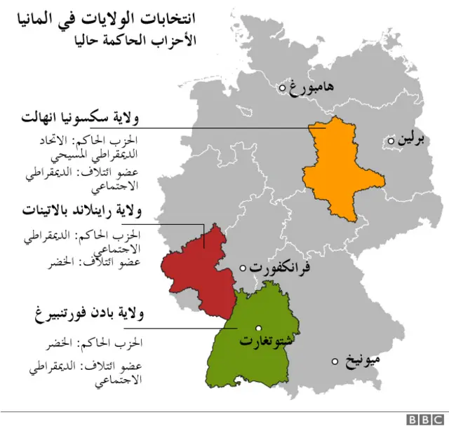 اما في ولاية سكسونيا انهالت الشرقية الفقيرة، والتي يحكمها ائتلاف يضم الديمقراطيين المسيحيين والحزب الديمقراطي الاجتماعي، تشير الاستطلاعات الى ان هذا الائتلاف سيظل في الحكم ولكنها تشير ايضا الى ان "البديل لالمانيا" فاز بـ 22 بالمئة من مجموع الاصوات.
