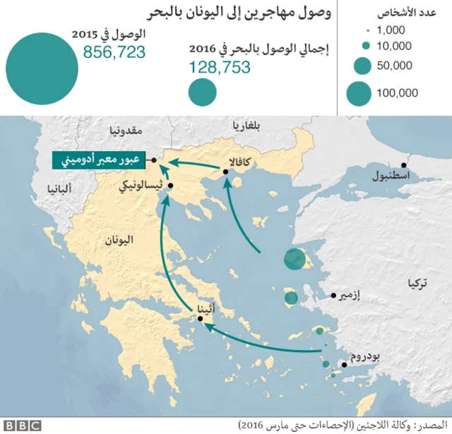 ودخل الاتحاد الاوروبي بحرا من تركيا الى اليونان منذ كانون الثاني / يناير 2015 اكثر من مليون مهاجر ولاجئ، فيما وصل 143 الفا هذه السنة فقط مات منهم 460 غرقا حسب المنظمة الدولية للهجرة.
