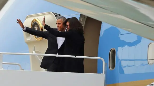 وكان في استقبال اوباما وزوجته وابنتاه لدى وصولهم إلى هافانا وزير الخارجية الكوبي برونو رودريغيز.