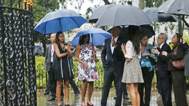 وقالت تارا مكالفي، مراسلة بي بي سي في هافانا إن "الصحافيين من الولايات المتحدة واسبانيا وفرنسا وبالتأكيد كوبا، كانوا ينتظرون وصول الرئيس الأمريكي في هافانا وكانوا واقفين على مقاعد مطلية باللون الأبيض لتخفيف حدة الحر، إلا أنه عندما حطت طائرة أوباما هطلت الأمطار".