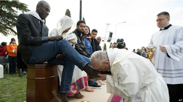 وادلى البابا بتلك الملاحظات اثناء احياء شعائر تقليدية تقام قبيل حلول عيد الفصح يقوم فيها الحبر الاعظم بغسل اقدام 12 شخصا وتقبيلها تشبها بعيسى المسيح الذي قام بغسل وتقبيل اقدام حوارييه في الليلة التي سبقت صلبه.