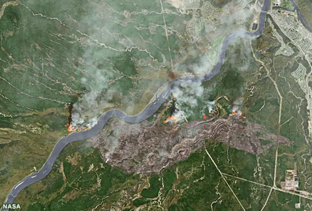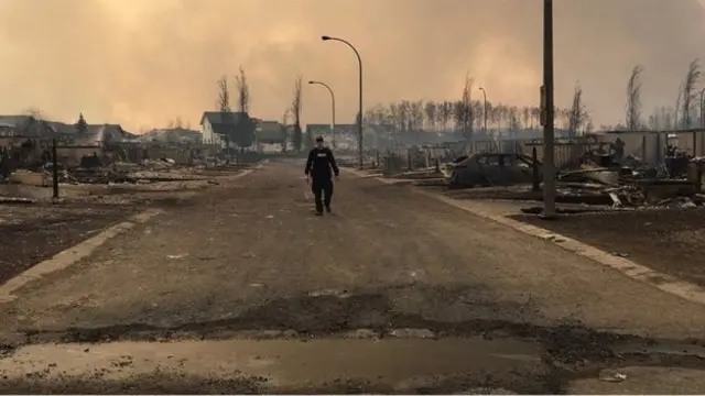 تظهر الصور التي حصلت عليها بي بي سي أن مناطق واسعة من مدينة فورت ماكماراي احترقت بالكامل من جراء اندلاع حرائق في الغابات المحيطة بالمدينة.