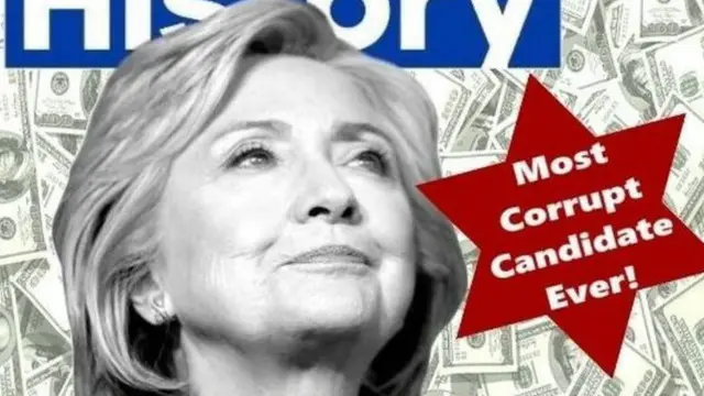 لكن الصورة حُذفت في وقت لاحق ووضعت العبارة التي تهاجم كلينتون في دائرة بدلا من نجمة.