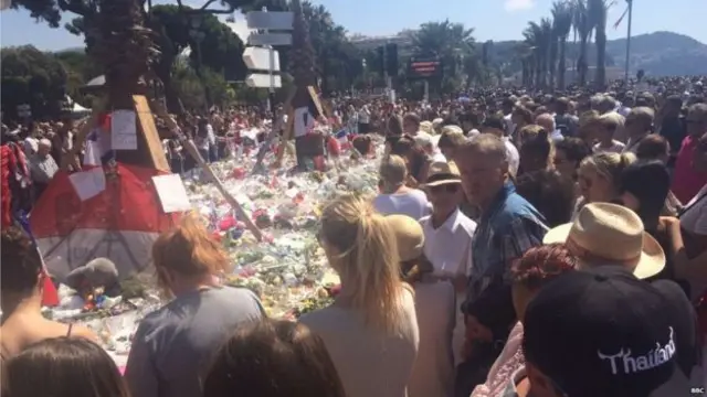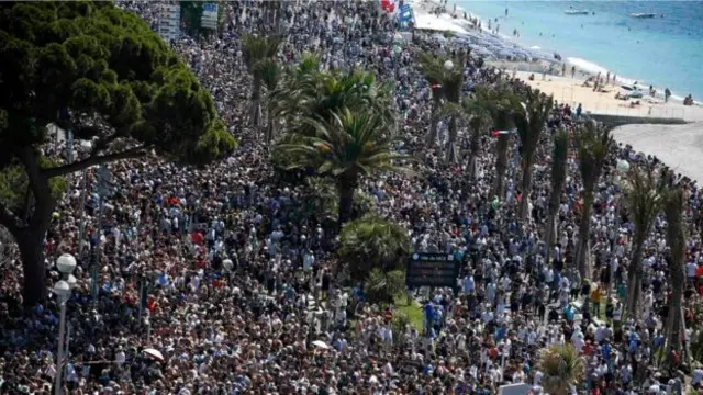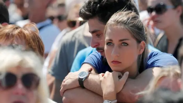 وشارك الآلاف في مراسم الحداد التي أقيمت على شاطيء مدينة نيس الفرنسية لتكريم 84 شخصا لقوا حتفهم في حادث دهس بشاحنة اقتحمت احتفالا شعبيا بيوم الباستيل، العيد الوطني الفرنسي في 14 يوليو/تموز الجاري.