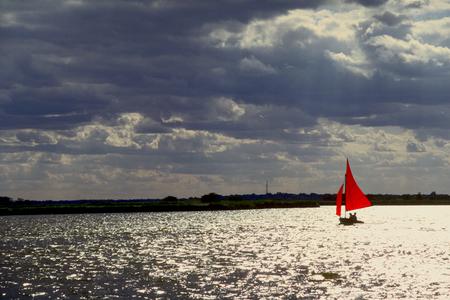 A Mirror dinghy sailing on Horsey Mere, Norfolk.