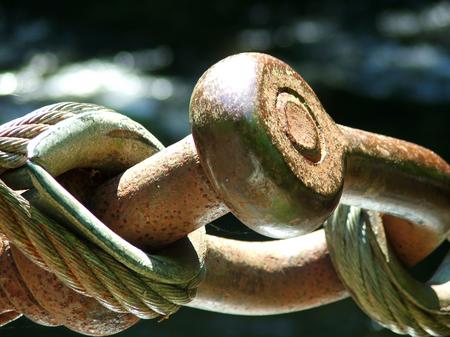 A metal rope bridge support at Tarr Steps on Exmoor