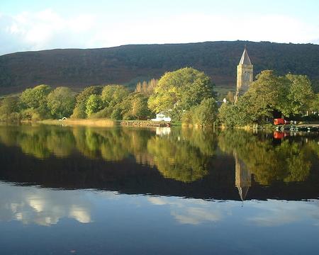 A perfect day for reflection on the waters of the Lake of Menteith