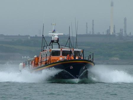 The RNLI Lifeboat "The Lady Rank" at speed on the Milford Haven Waterway taken from my fathers boat on a grey June afternoon....