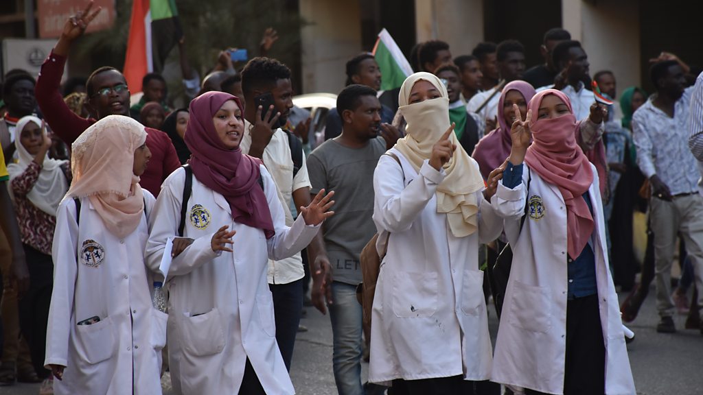 (Image:Sudanese doctors protesting in Khartoum. Credit: Mike Thomson/BBC)
