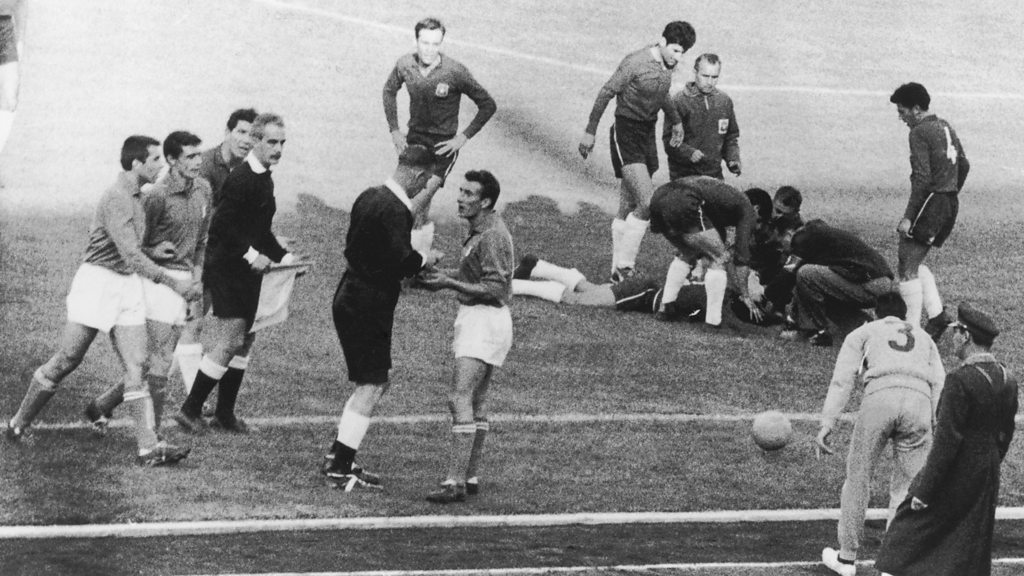 In the latest in a World Cup series, we go back to 1962 and probably the most violent match in the history of the tournament. Described by BBC commentator David Coleman as a "stupid and disgusting exhibition", the confrontation between Chile and Italy was marred by spitting, kicking and punch-ups between the players. It is now known as the Battle of Santiago. Richard Murie talks to the former Chilean defender, Humberto "The Cheetah" Cruz.
