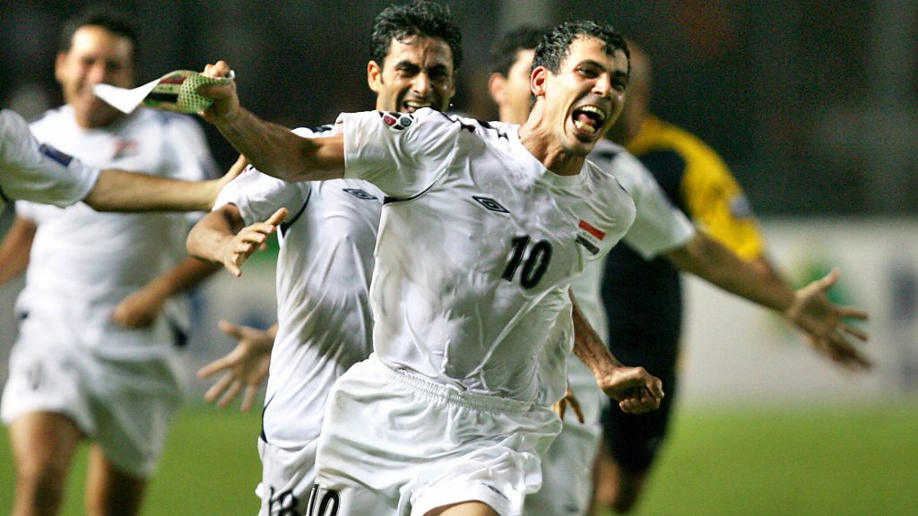 PHOTO: Iraqi captain, Younis Mohmoud, celebrates (AFP/Getty Images)